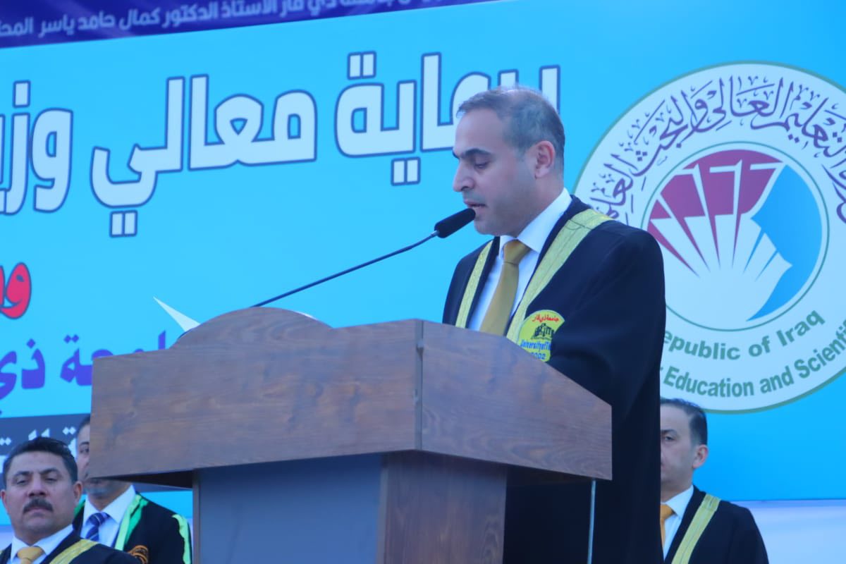 مقتطفات من وقائع حفل تخرّج دورة التميّز والإبداع – جامعة ذي قار – مساعد رئيس الجامعة للشؤون العلمية المحترم دكتورشاكر كاظم علي