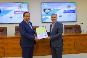 وفي ختام الجلسة، قدّم رئيس الجامعة درع التكريم إلى المحاضر تقديراً لمشاركته القيّمة، مثمّناً جهوده العلمية ومساهمته في نقل الخبرة الأكاديمية العالمية إلى الجامعة.